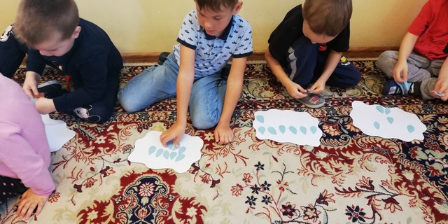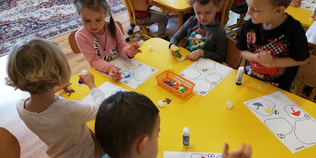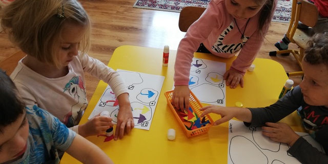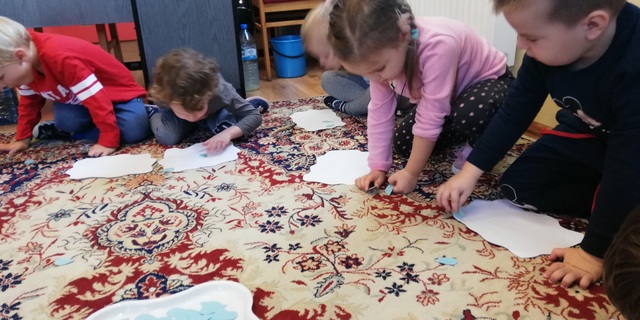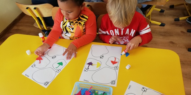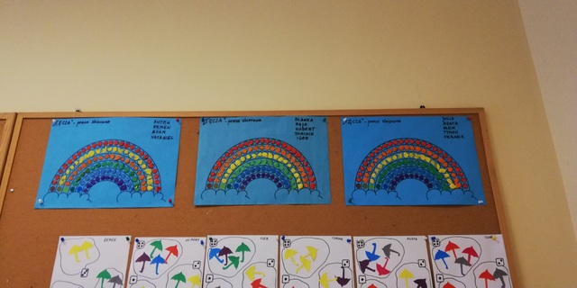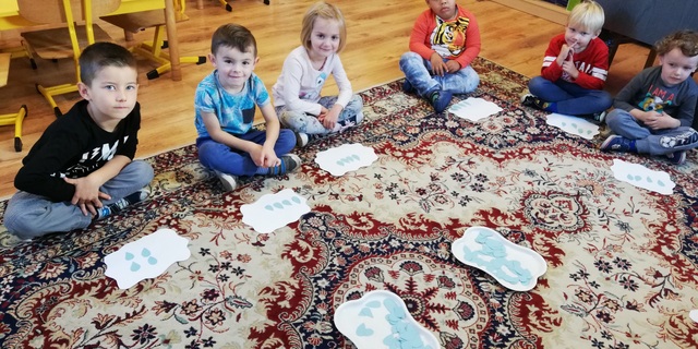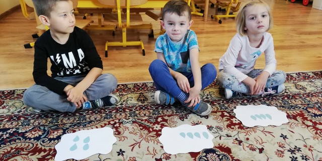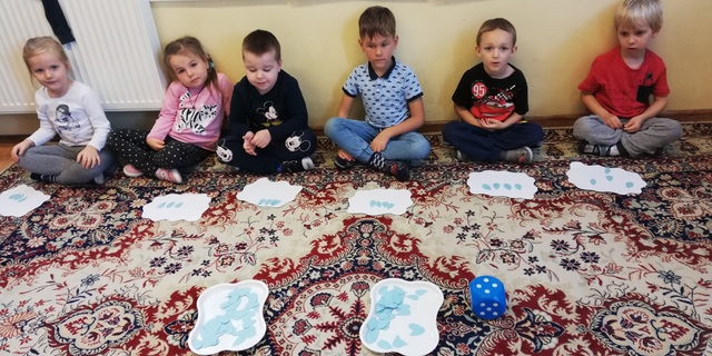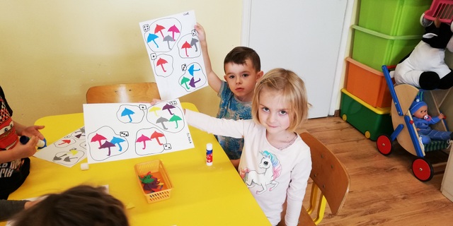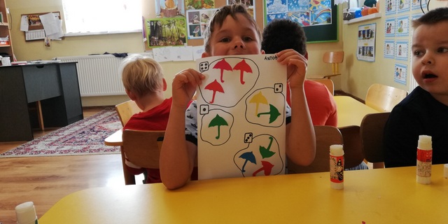Tematem przewodnim minionego tygodnia w grupie 4-5 latków była jesienna deszczowa pogoda. Dzieci eksperymentując dowiedziały się skąd skąd się bierze deszcz oraz jak powstaje tęcza. Deszczowe kropelki i parasole okazały się bardzo pomocne w nauce liczenia.