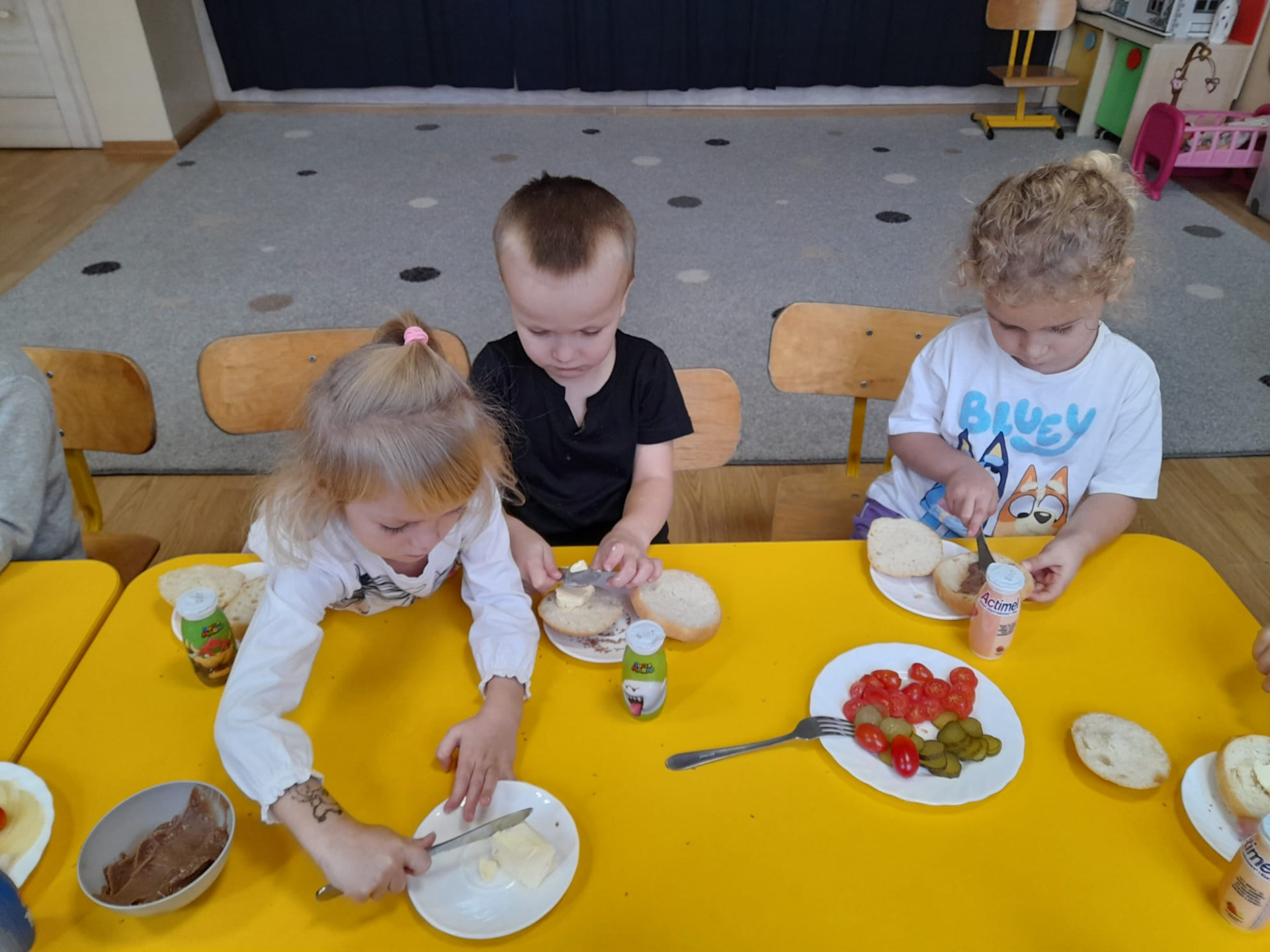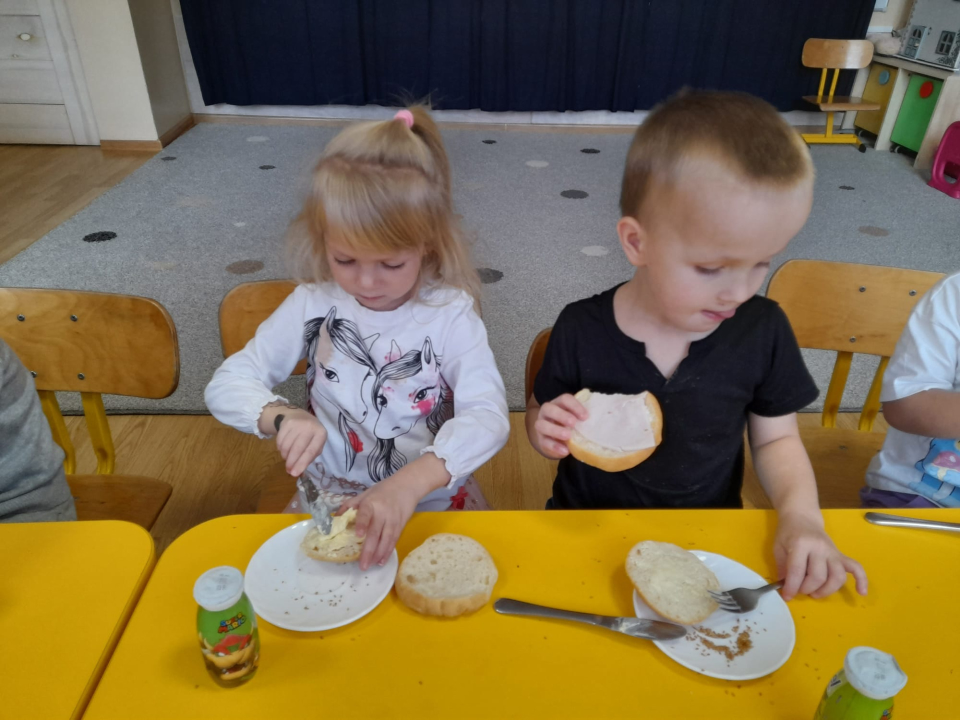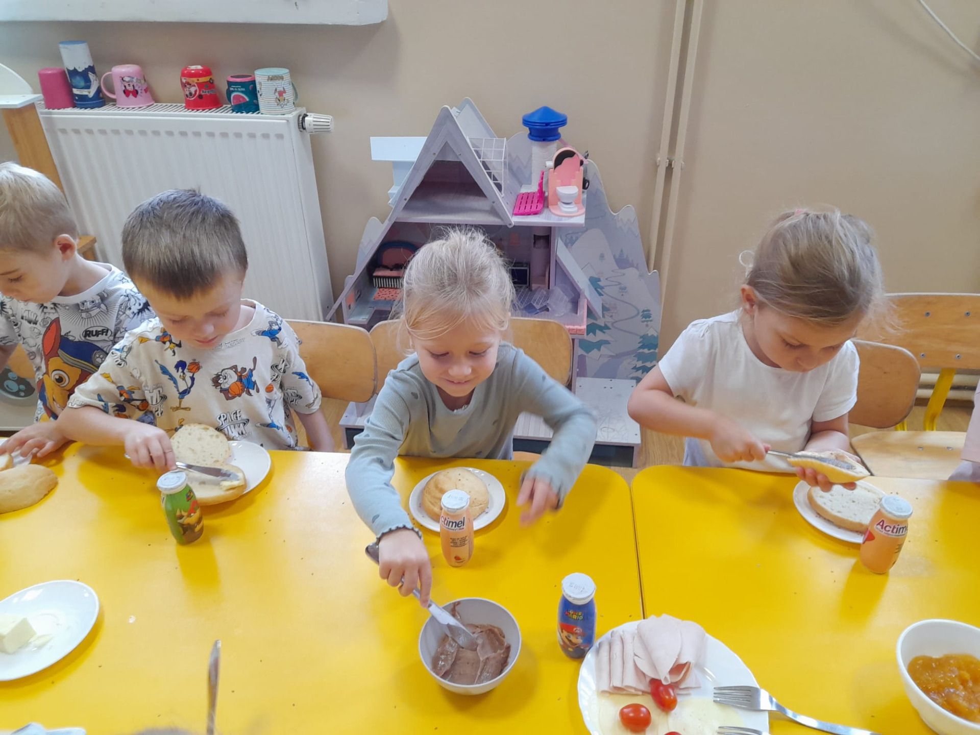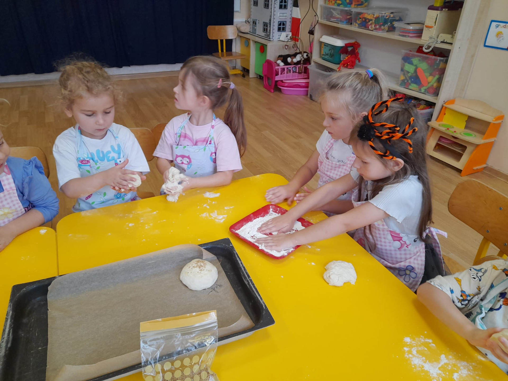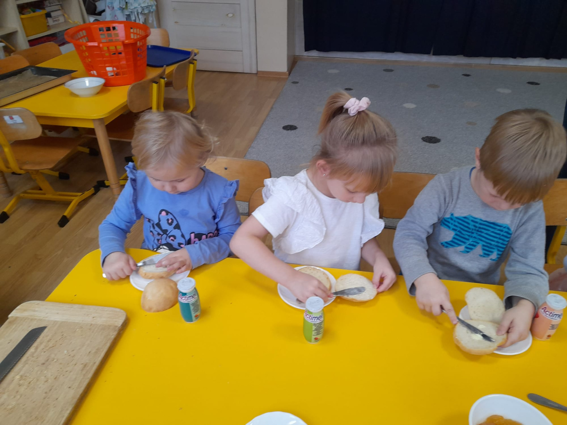 Z okazji Dnia chleba, czterolatki w naszym przedszkolu wcieliły się w rolę piekarzy. Przy pomocy pani kucharki przygotowały ciasto, z którego uformowały bułeczki. Na podwieczorek dzieci przygotowały sobie kanapki, które z apetytem były zjedzone do okruszka. Serdecznie dziękujemy Pani Karolinie za zakup produktów, a Pani Małgosi za pomoc w pieczeniu bułeczek.