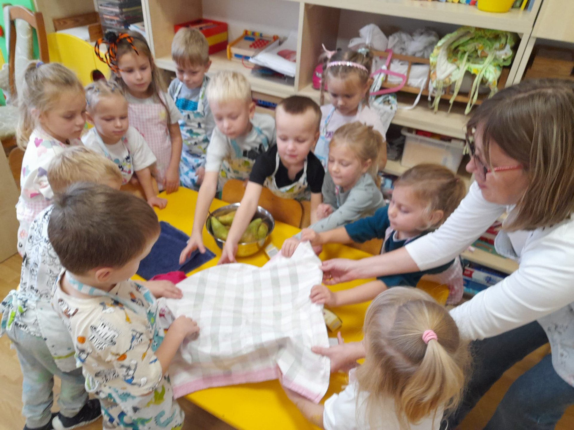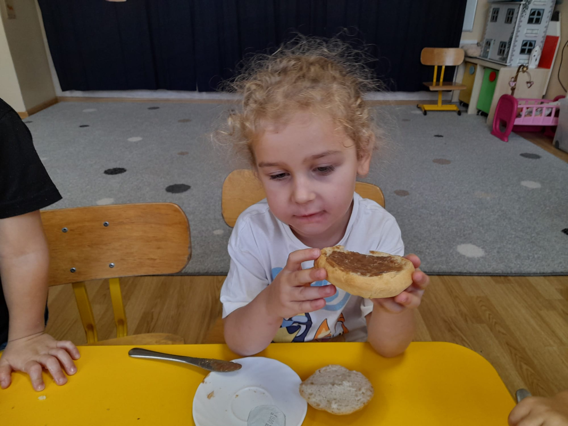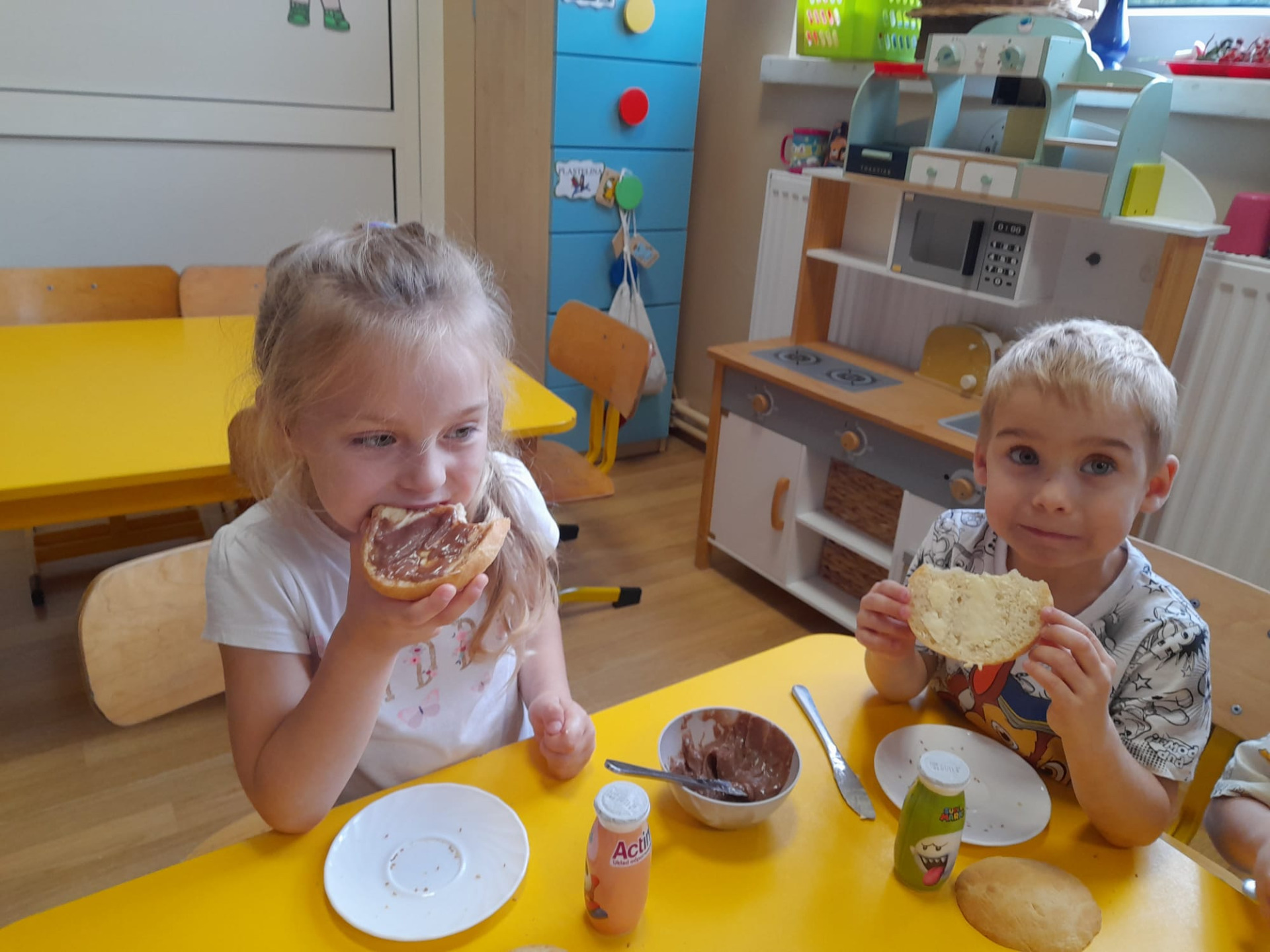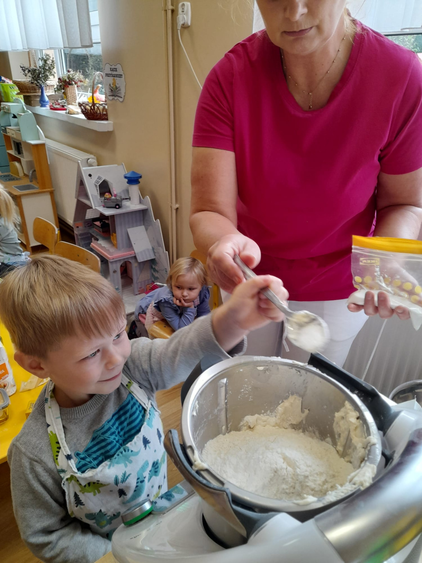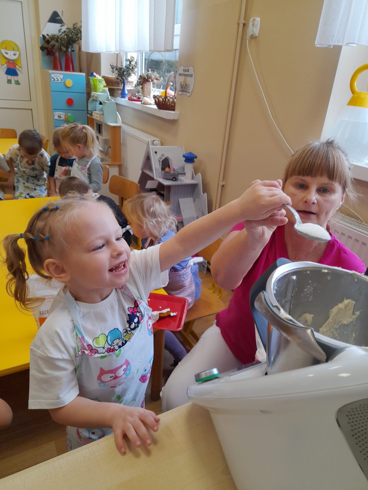 Z okazji Dnia chleba, czterolatki w naszym przedszkolu wcieliły się w rolę piekarzy. Przy pomocy pani kucharki przygotowały ciasto, z którego uformowały bułeczki. Na podwieczorek dzieci przygotowały sobie kanapki, które z apetytem były zjedzone do okruszka. Serdecznie dziękujemy Pani Karolinie za zakup produktów, a Pani Małgosi za pomoc w pieczeniu bułeczek.