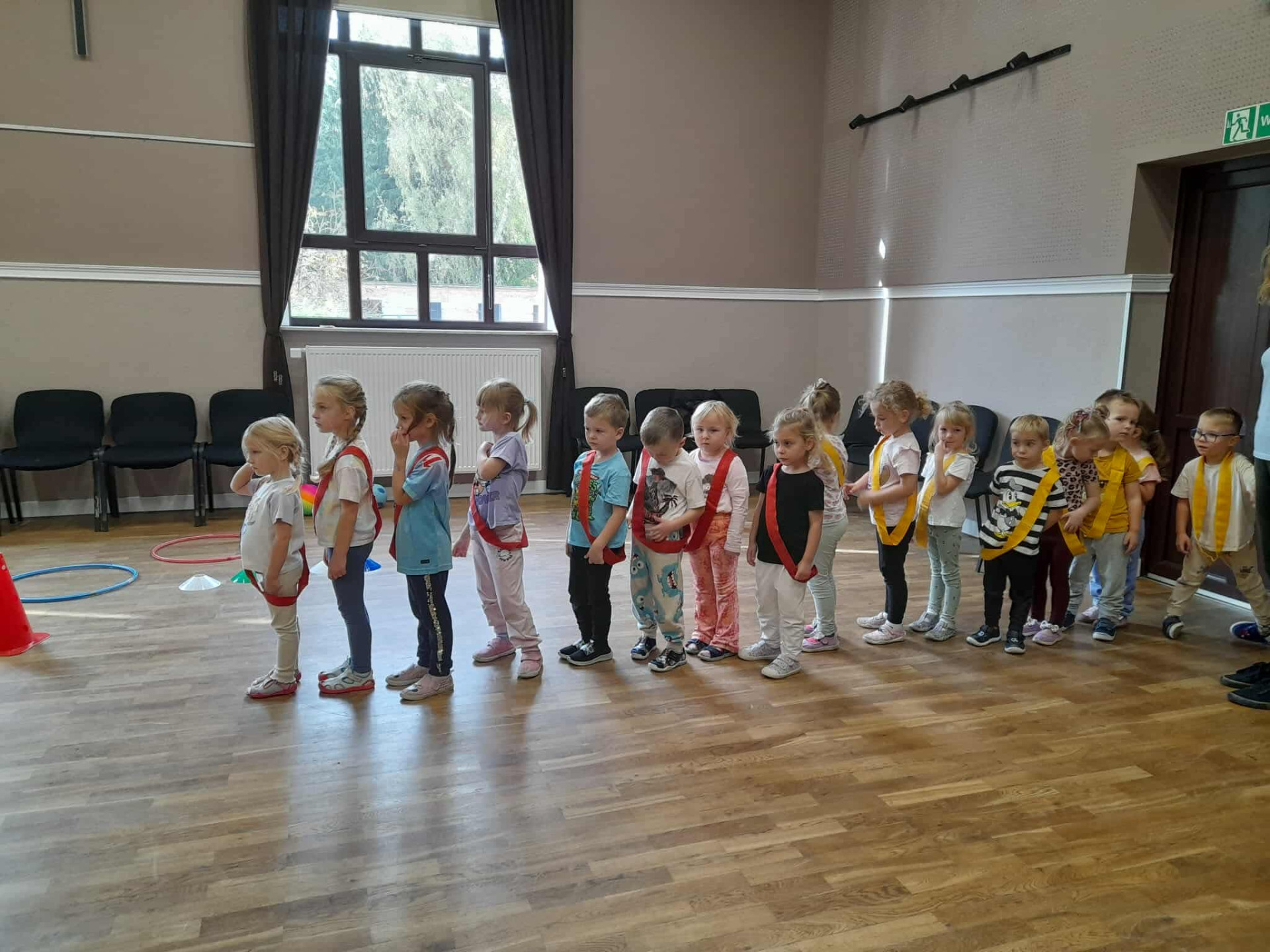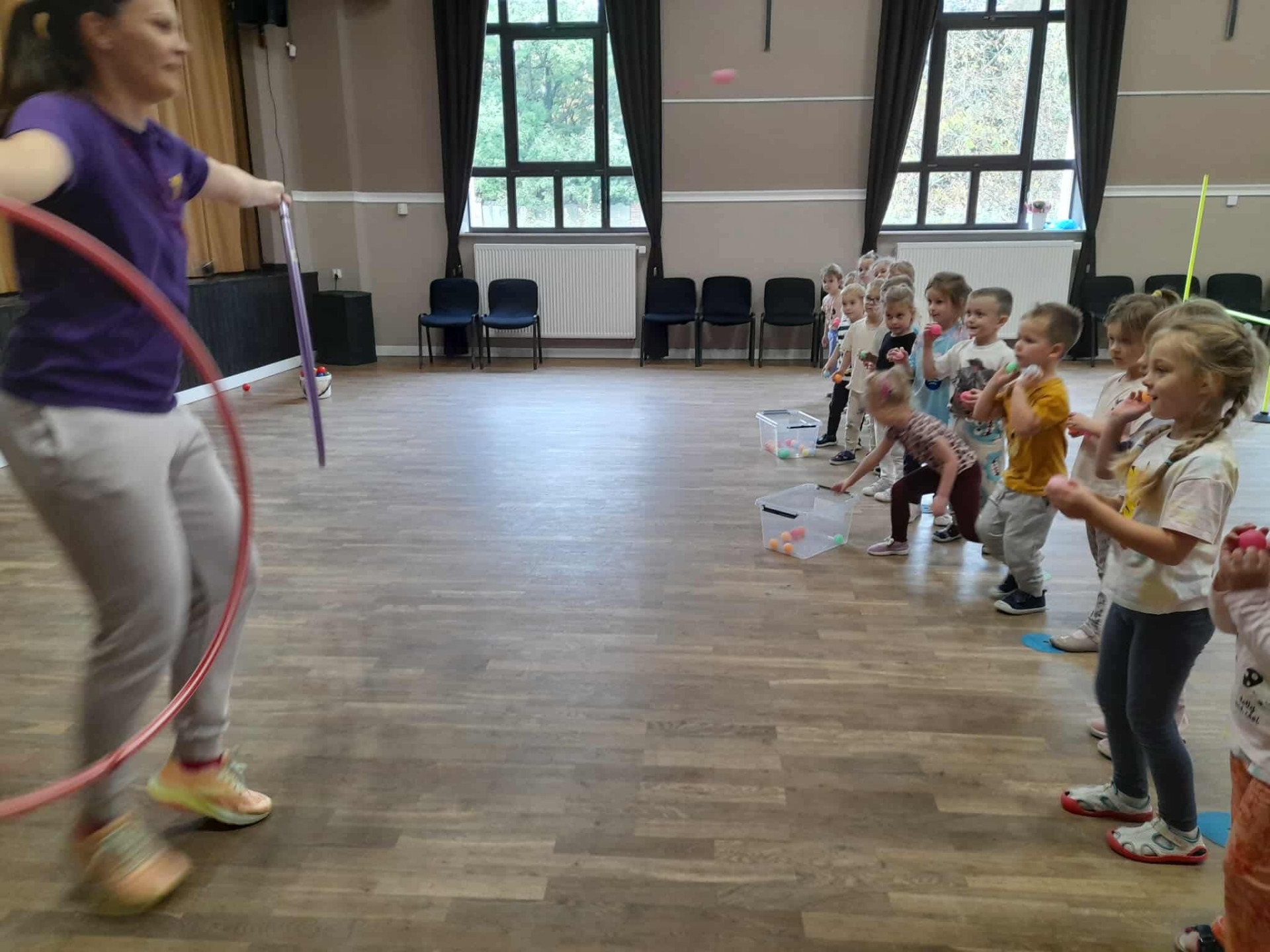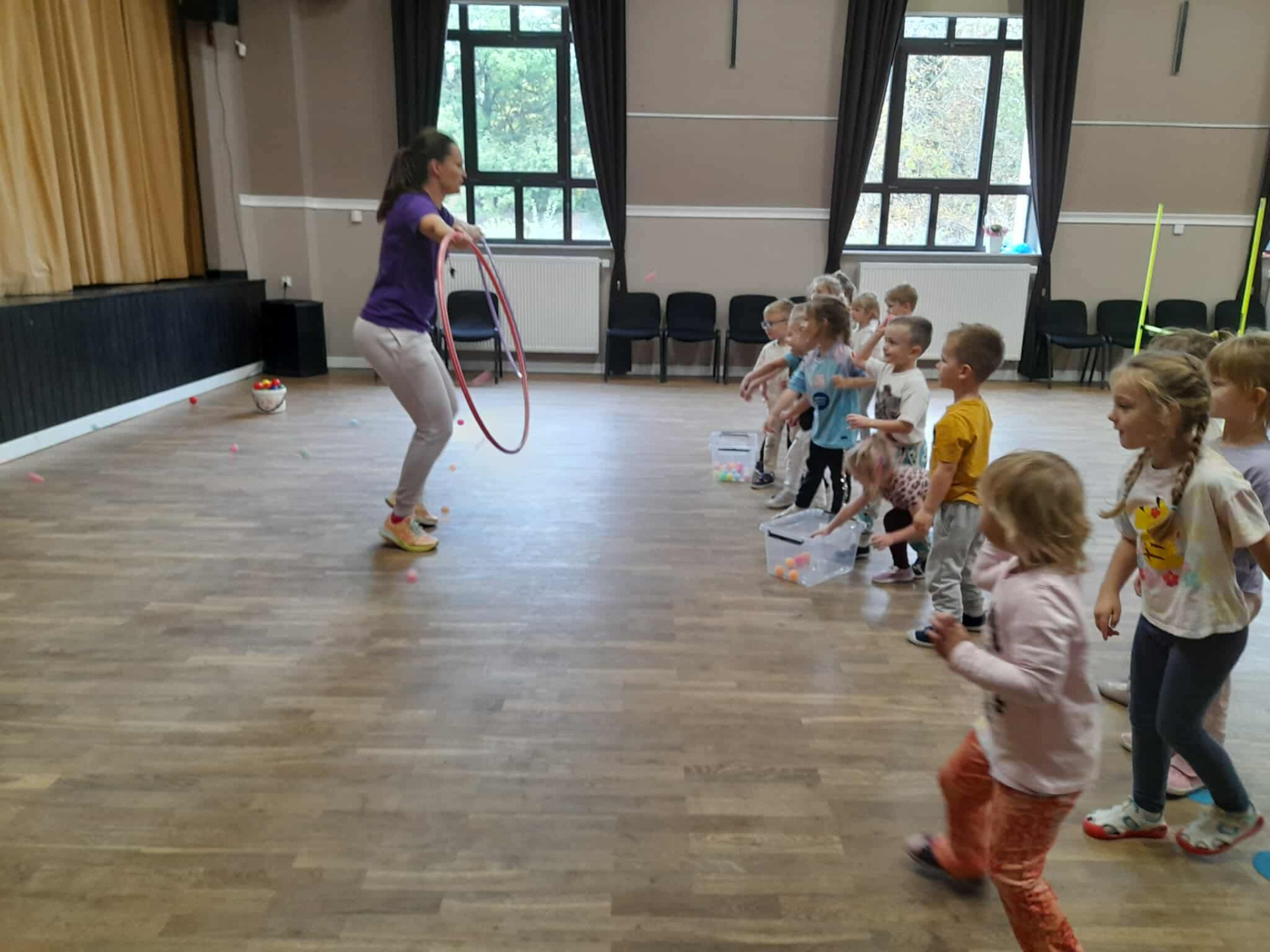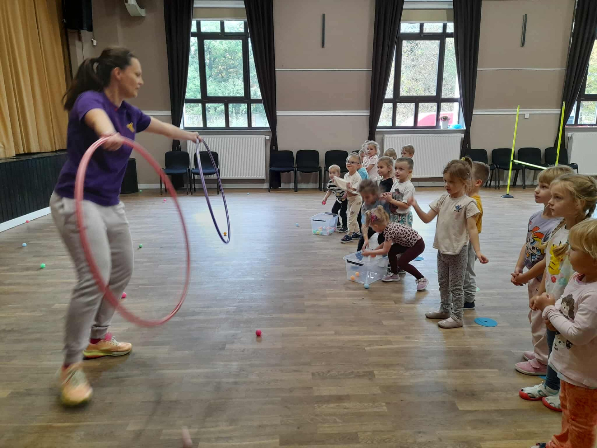 W środę 22 października odbyły się w grupie 4 latków zajęcia sportowe, które przeprowadziła mama Ani. Pani Magda na codzień jest nauczycielem wychowania fizycznego. Podczas ćwiczeń dzieci wykazały się wielkim zaangażowaniem i sprawnością fizyczną. Na zakończenie zajęć czterolatki otrzymały od mamy Ani pamiątkowe medale, gwizdki i słodkie upominki. Bardzo dziękujemy Pani Magdzie za poświęcony czas na wspólną zabawę z dziećmi.