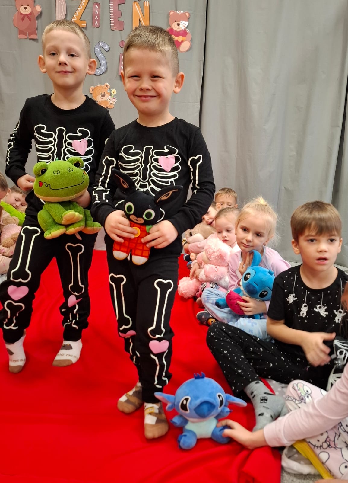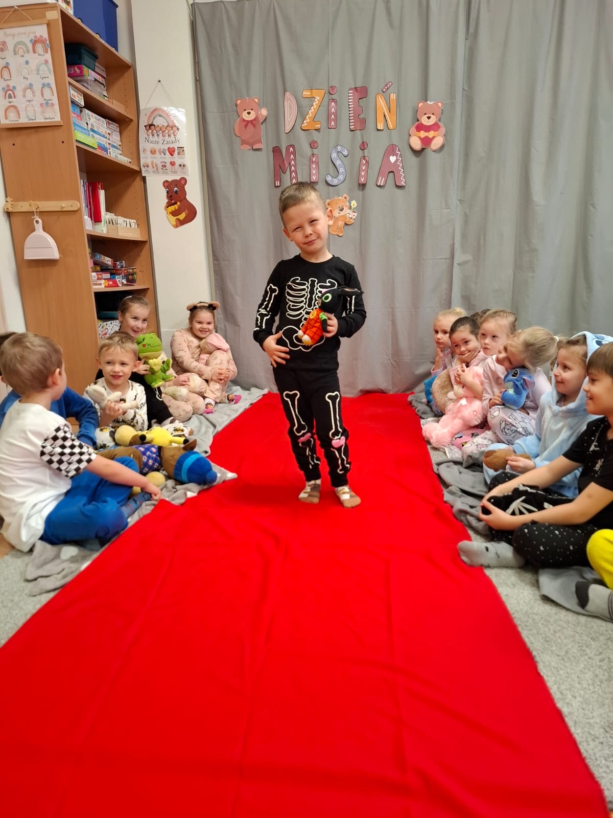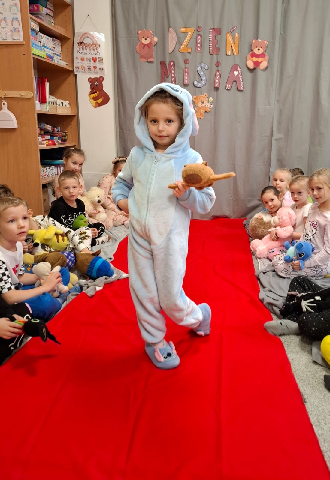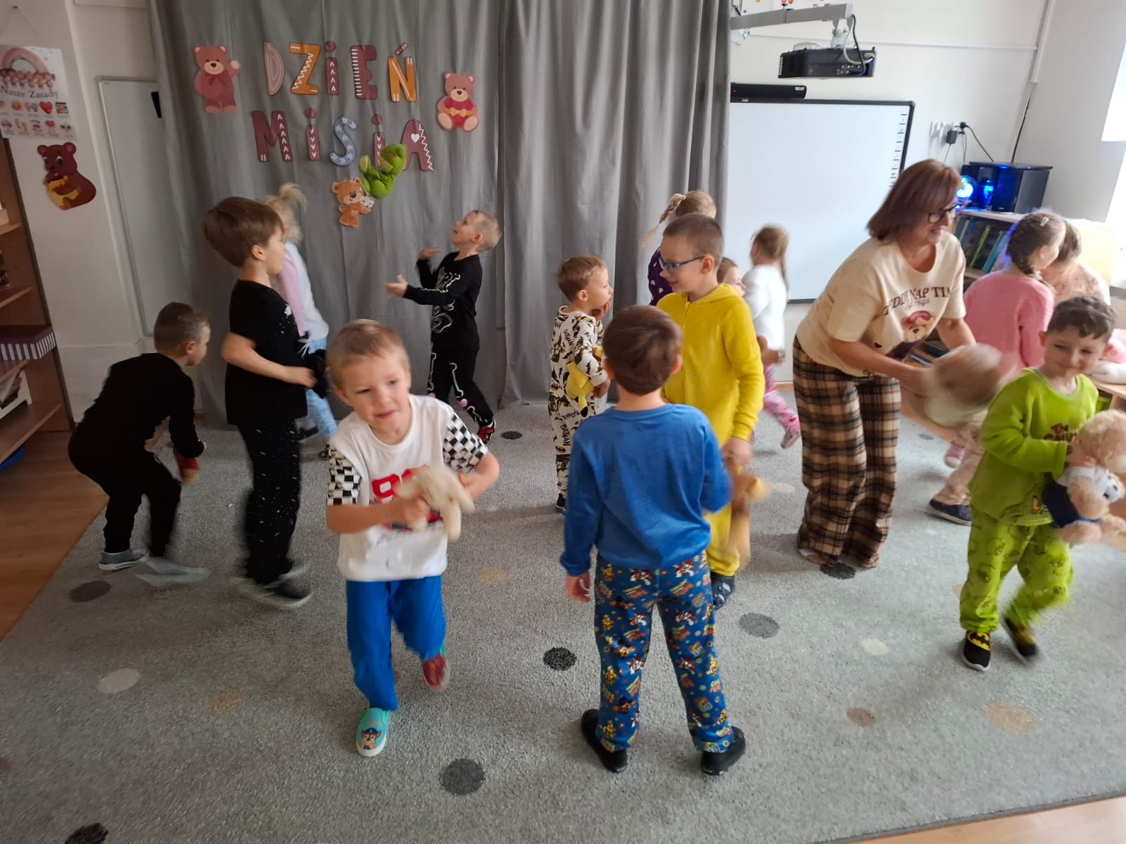 Dzisiaj obchodziliśmy wyjątkowy ,,DZIEŃ MISIA” pod hasłem ,,PIŻAMA PARTY”. Tego dnia wszystkie dzieci ( i nie tylko ;) przyszły ubrane w swoje ulubione piżamki, a wraz z nimi pojawiły się pluszowe misie i miękkie kocyki. Przedszkolaki w swoich grupach uczestniczyły w zabawach wiekowych, słuchały misiowych opowieści, brały udział we wspólnych tańcach. Było dużo śmiechu, przytulania i radosnej atmosfery. Takie chwile budują piękne wspomnienia i wzmacniają przedszkolną społeczność.