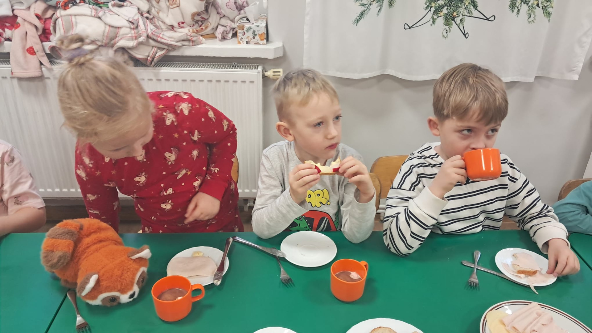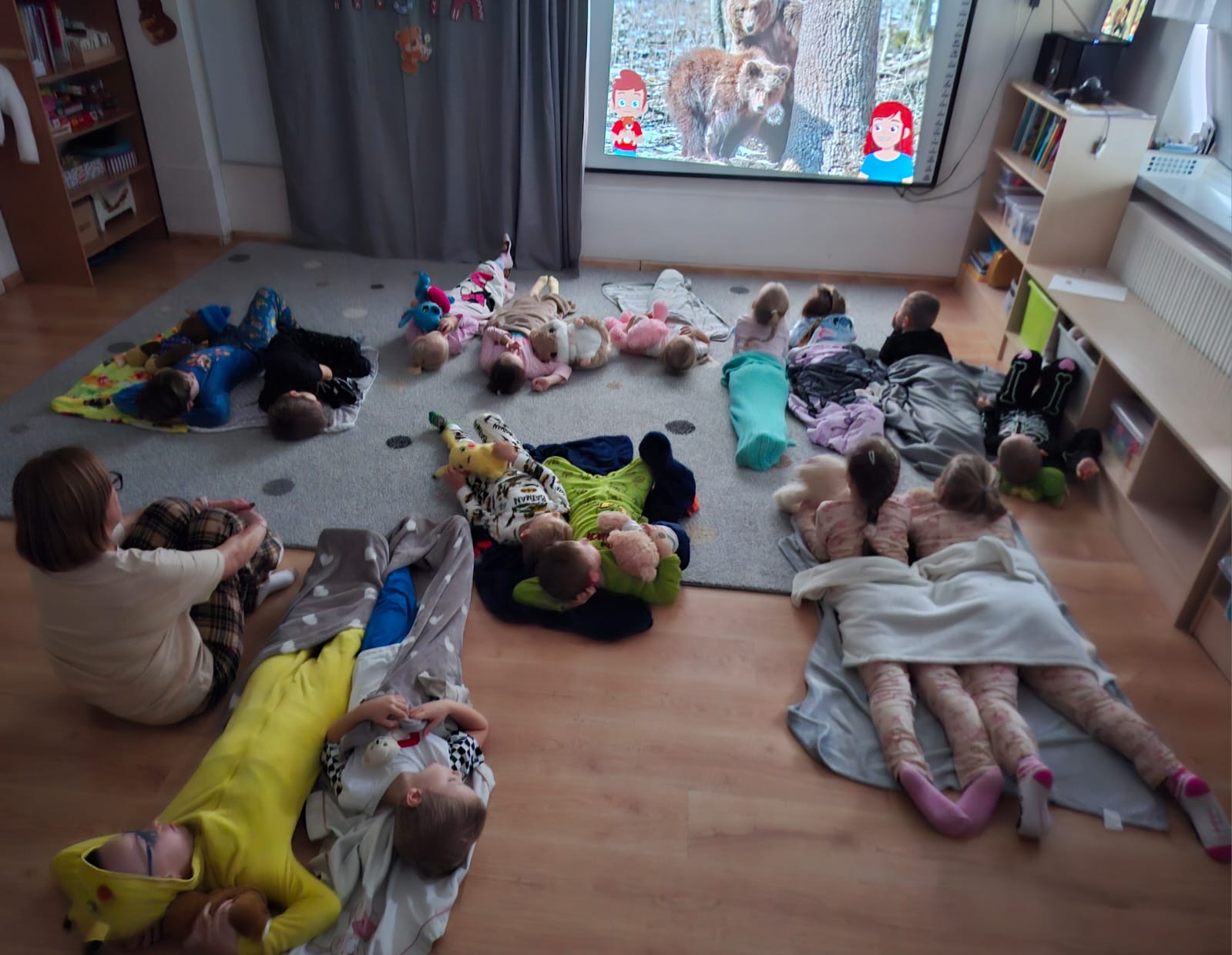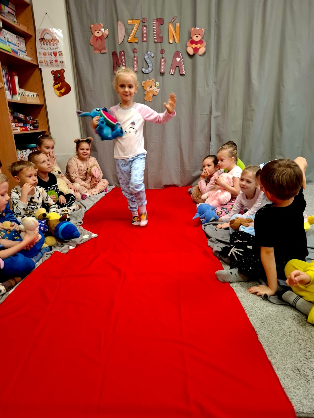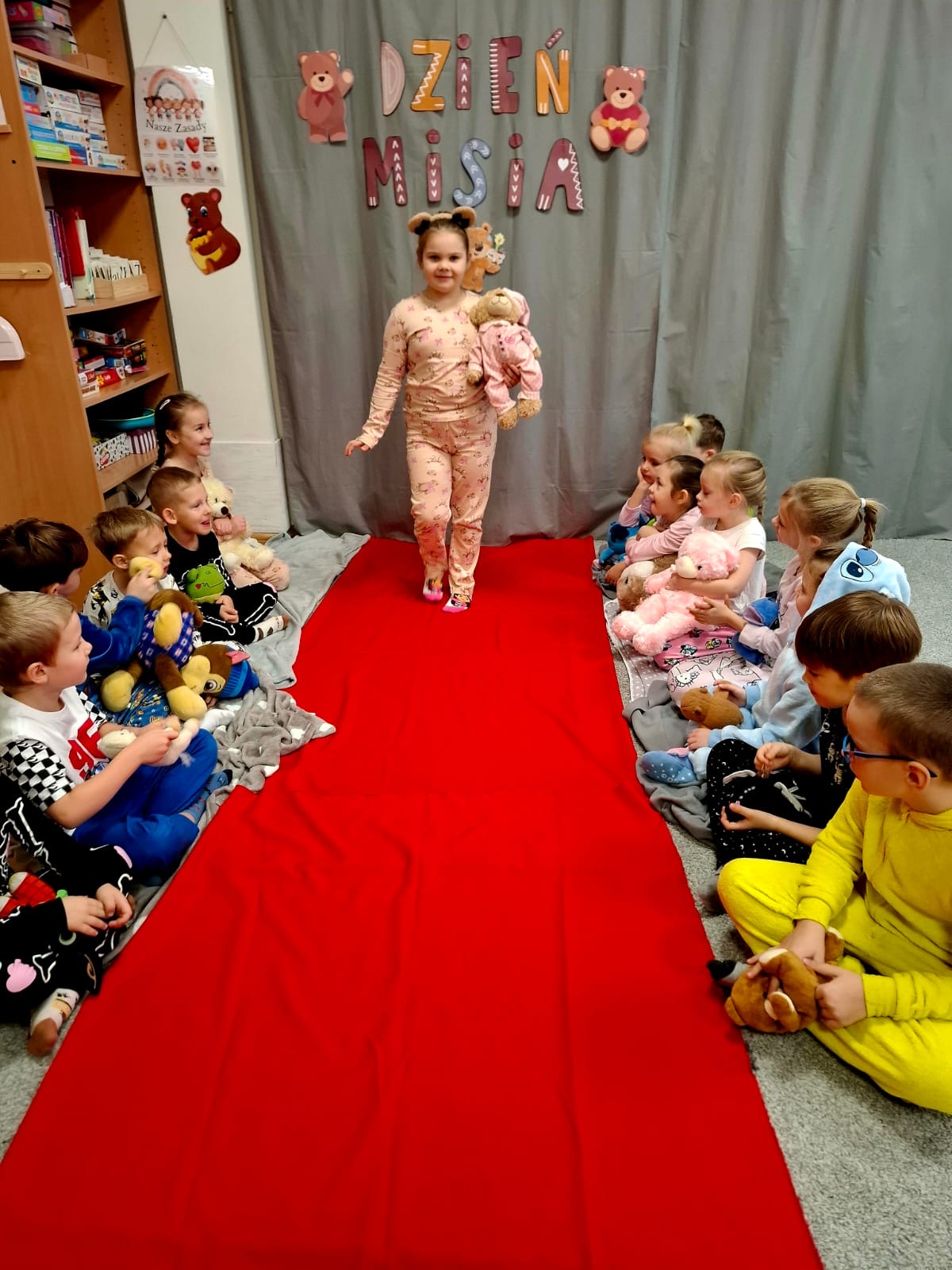 Dzisiaj obchodziliśmy wyjątkowy ,,DZIEŃ MISIA” pod hasłem ,,PIŻAMA PARTY”. Tego dnia wszystkie dzieci ( i nie tylko ;) przyszły ubrane w swoje ulubione piżamki, a wraz z nimi pojawiły się pluszowe misie i miękkie kocyki. Przedszkolaki w swoich grupach uczestniczyły w zabawach wiekowych, słuchały misiowych opowieści, brały udział we wspólnych tańcach. Było dużo śmiechu, przytulania i radosnej atmosfery. Takie chwile budują piękne wspomnienia i wzmacniają przedszkolną społeczność.
