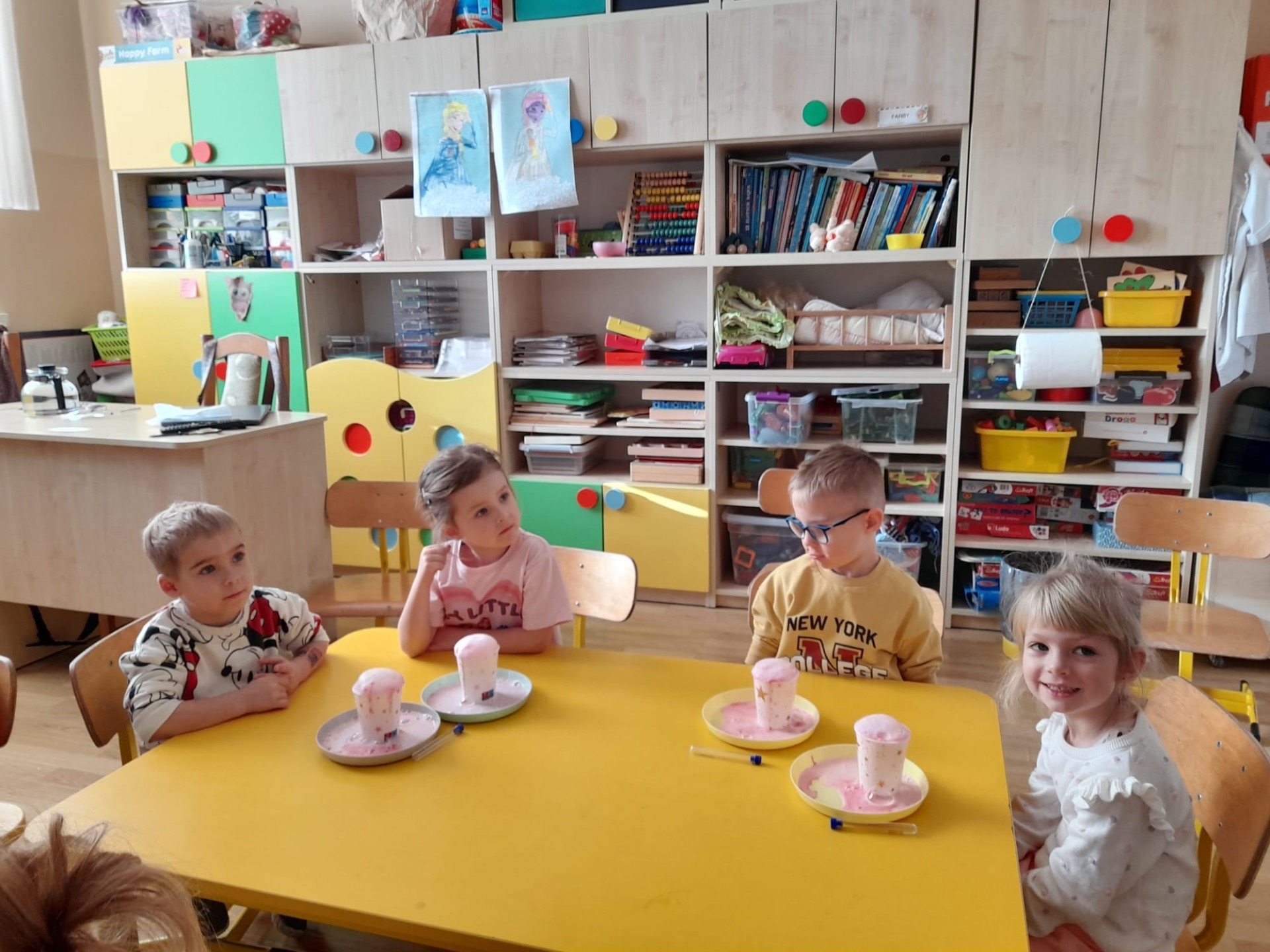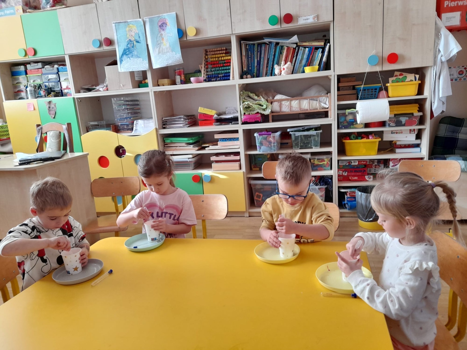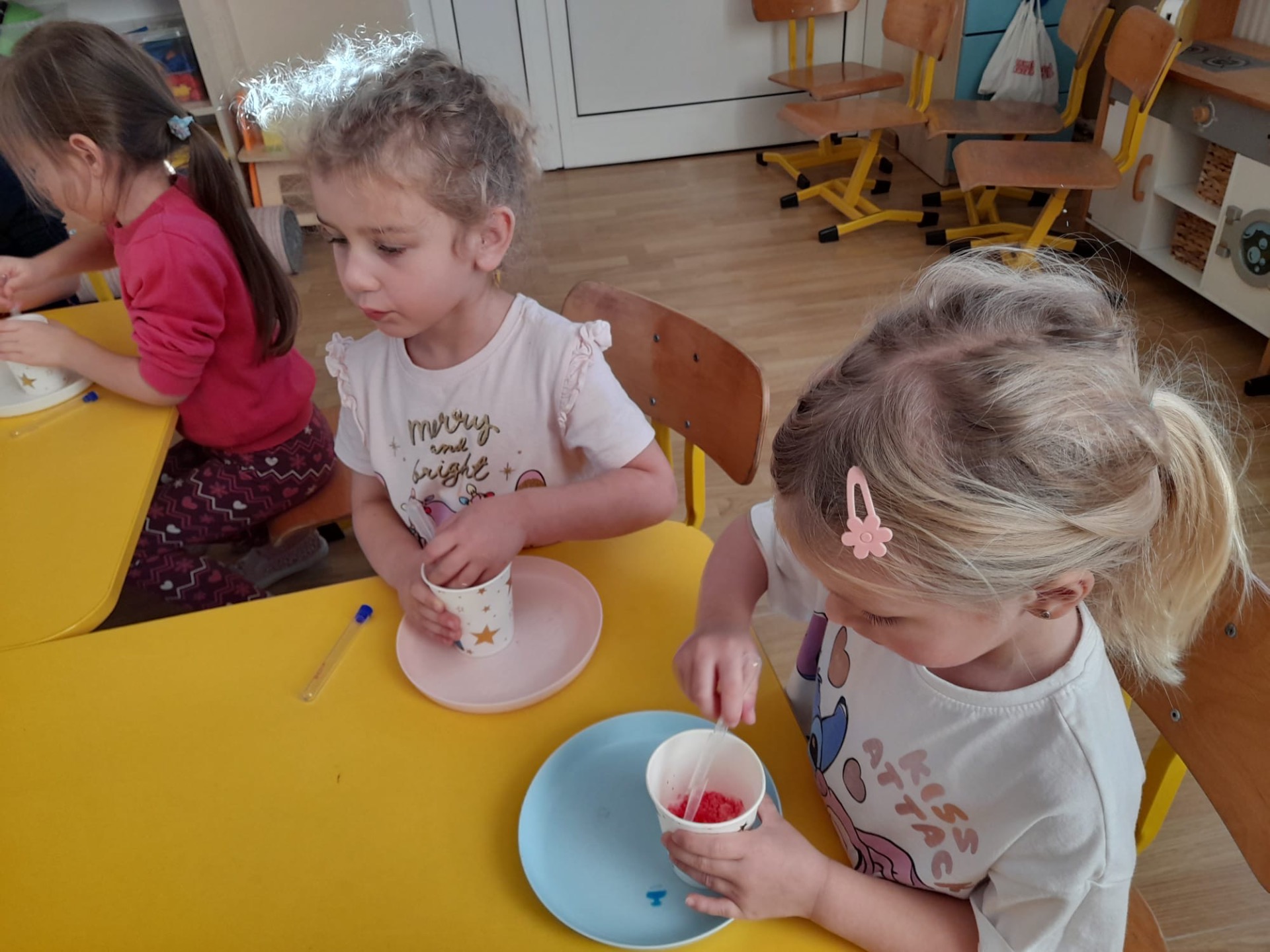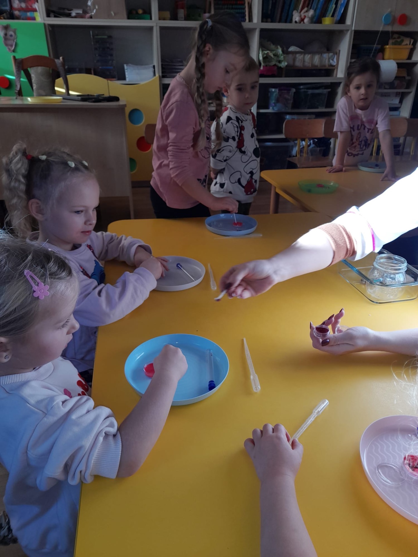 W czwartek 27 listopada odwiedziła grupę 4 latków mamusia Seweryna. Pani Karolina z zamiłowania jest chemikiem i przygotowała dla nas kilka ciekawych doświadczeń z wodą. Wszystkie dzieci z wielkim entuzjazmem podejmowały się nowych wyzwań i czerpały z nich wiele radości. Bardzo dziękujemy Pani Karolinie za odwiedziny i ciekawą naukę poprzez zabawę i doświadczenia. Bardzo zachęcamy innych Rodziców do spędzania z nami wolnego czasu.